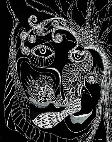 'THE BIRD WHISPERERS' ink on paper 14"x17"'