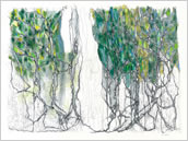"RAIN-WAVE-LAND-SKY" Series, an imaginary recreation from childhood, comes to the surface in my art. Growing up in a small village near the ocean, I remember an interior life bubbling over with a rebellious yearning to construct a magical world populated to overflowing with fanciful images.